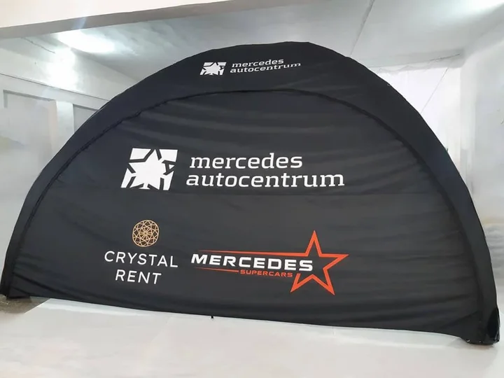 - Potencjał marketingowy (Branding): W przeciwieństwie do tradycyjnych hal, namioty pneumatyczne oferują możliwość brandingu na całej powierzchni. Dzięki technologii druku sublimacyjnego bez ograniczeń kolorystycznych, strefa kibica może stać się jedną wielką, widoczną z daleka reklamą sponsora transmisji lub samego festiwalu.